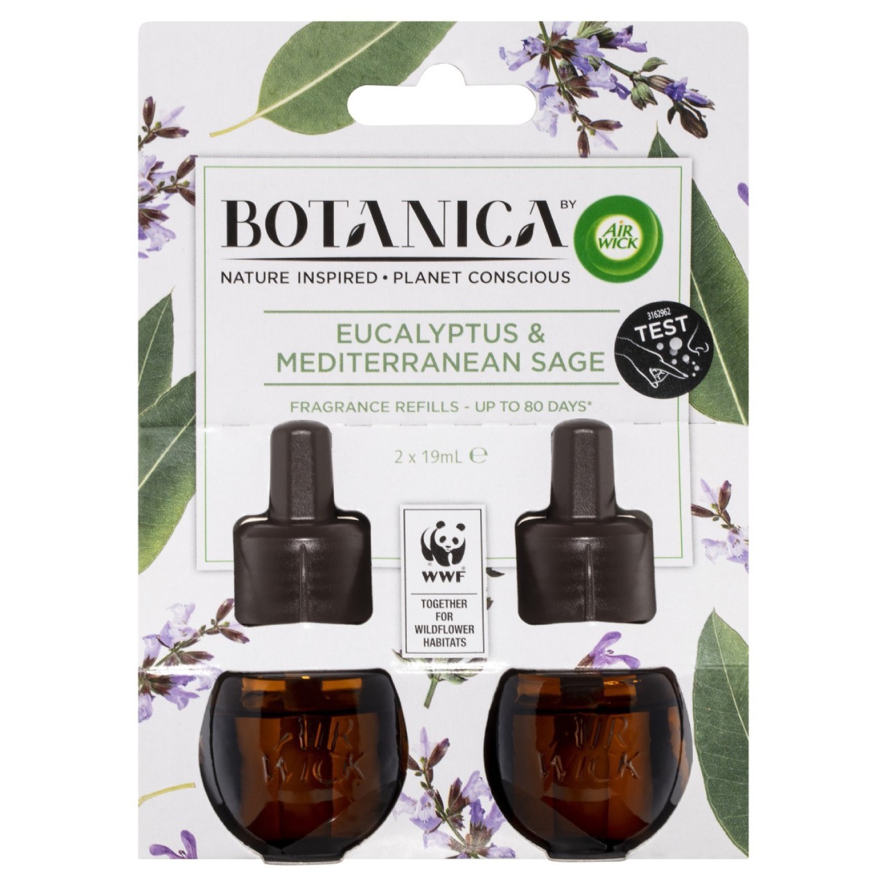 Botanica by Air Wick Eucalyptus and Mediterranean Sage Liquid Electric Fragrance Refills each lasts up to 80 days per refill* (*based on 8 hours daily usage on minimum setting).