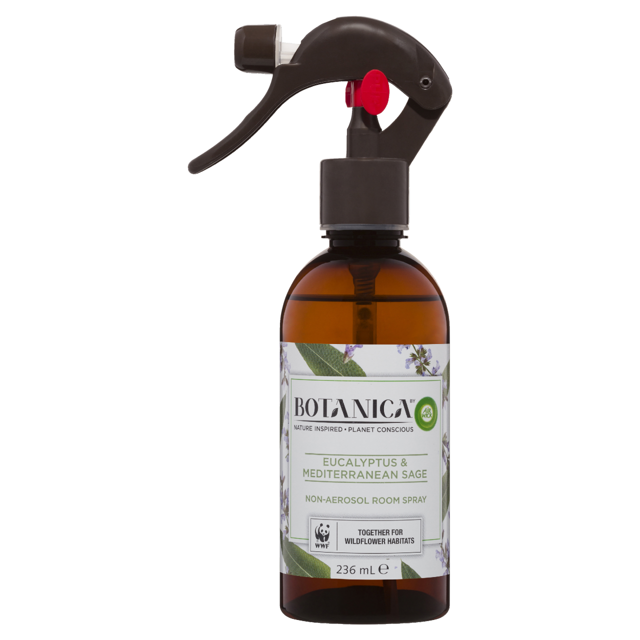 Indulge in the gentle aroma of Botanica’s non-aerosol range of room sprays, made with fragrances that are infused with natural essential oils. Freshen your space with the revitalizing notes of Eucalyptus and grounding scents of Mediterranean Sage.