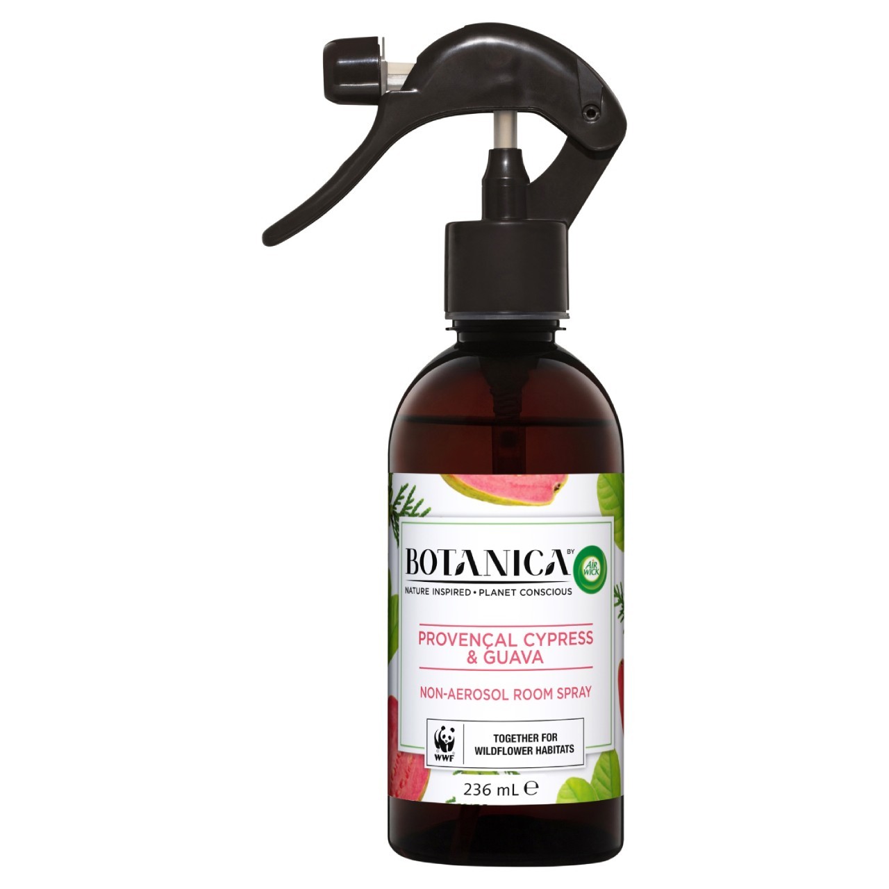 Surround yourself with the scent of Botanica by Air Wick Provencal Cypress & Guava Fragrance Room Spray. Simply spray to release the sweet citrus blend of cypress and grapefruit to bring instant freshness to your home.